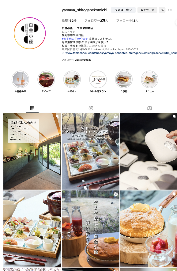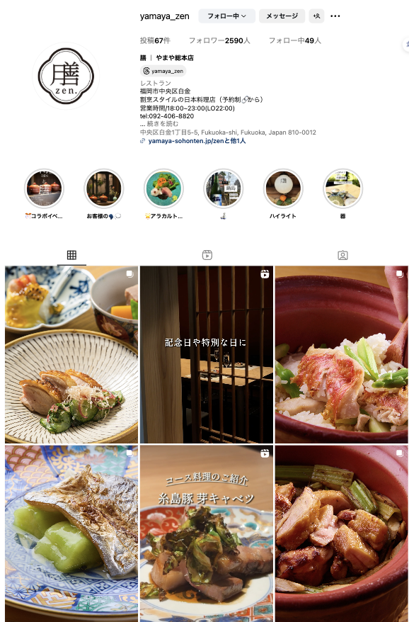 その中にある2店舗、「白金小径(しろがねこみち)」と「膳(ぜん)」(福岡県福岡市中央区白金)のInstagramアカウント運用を2024年4月より担当しています。